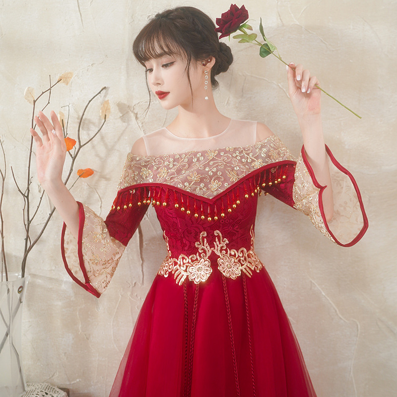 Gaun pengantin bersulang, gaun malam ramping merah Musim Semi 2022, Gaun gaya Tiongkok cheongsam pendek