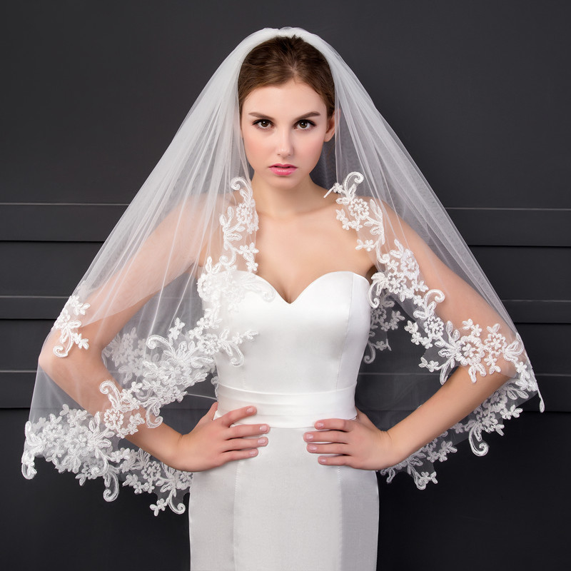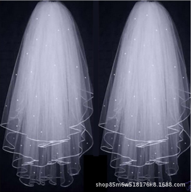 Grosir kerudung pengantin pita putih pendek multi lapisan tiga lapis sisir rambut kerudung halus gaya fotografi studio hiasan kepala