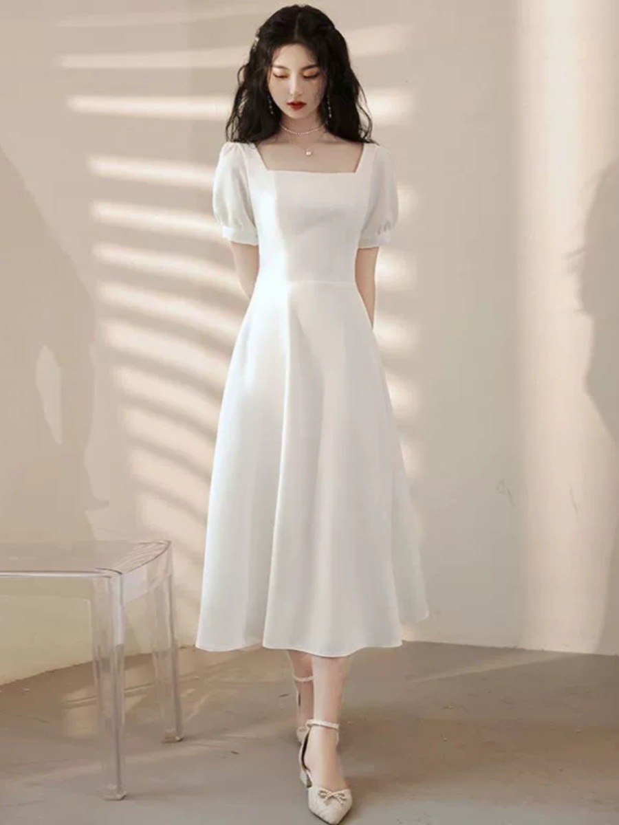 Gaun Pesta Putih Gaun Acara Formal Wanita Gaun Pesta Pesta Putih Sederhana Gaun Malam