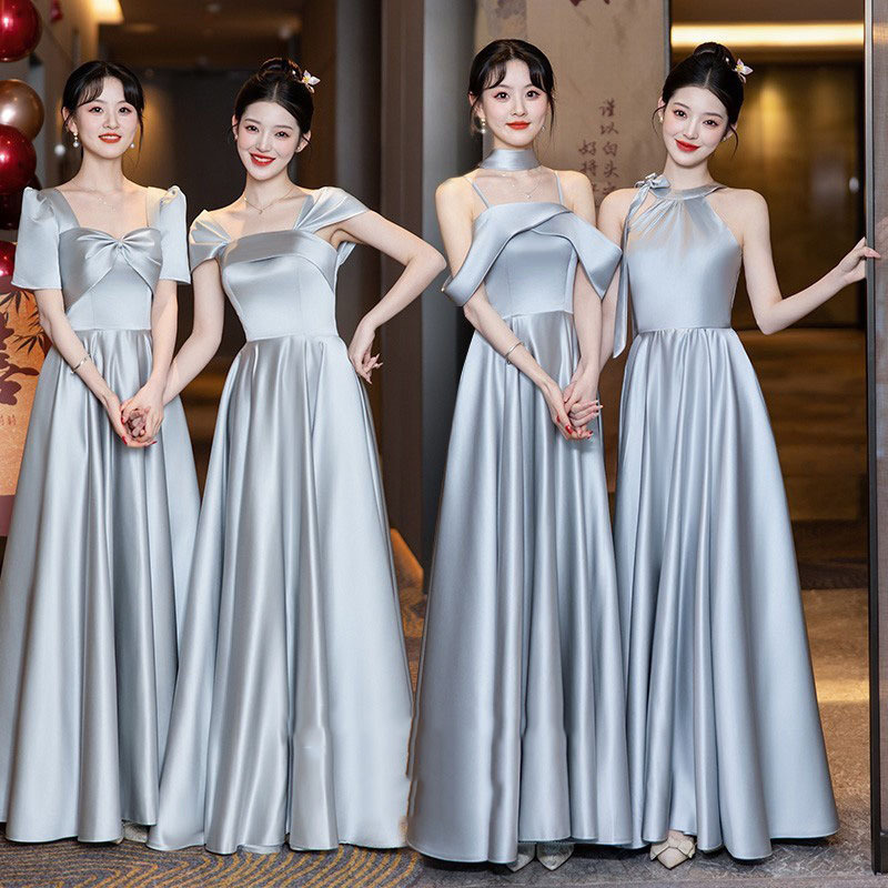 Pakaian Pengiring Pengantin Warna Abu-abu Model Baru 2025 Musim Panas Sensance Kelas Atas Gaun Kelompok Adik Kecil Bisa Dipakai Sederhana dan Murah Hati