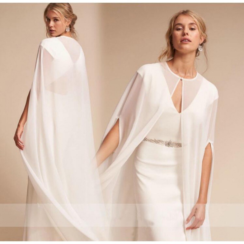 Jubah syal sifon gading putih, jubah fotografi pernikahan foto luar ruangan performa panggung musim semi dan Amerika