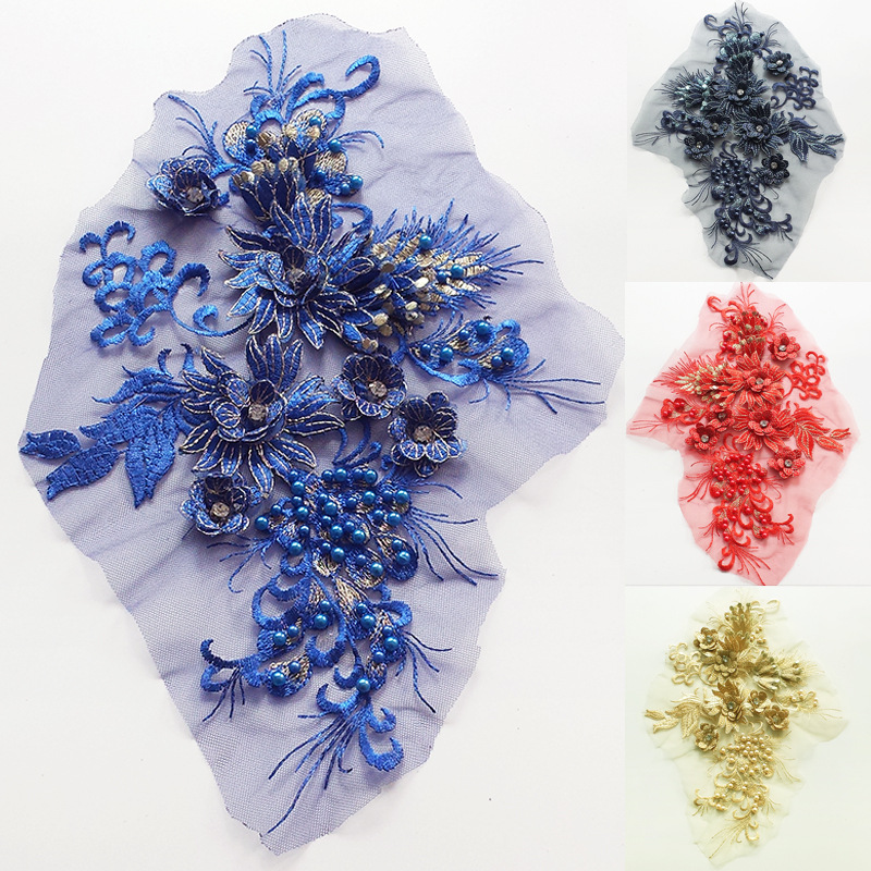 Bunga tiga dimensi bordir berlian imitasi payet manik-manik renda bunga buatan tangan diy applique pakaian dekorasi renda aksesoris