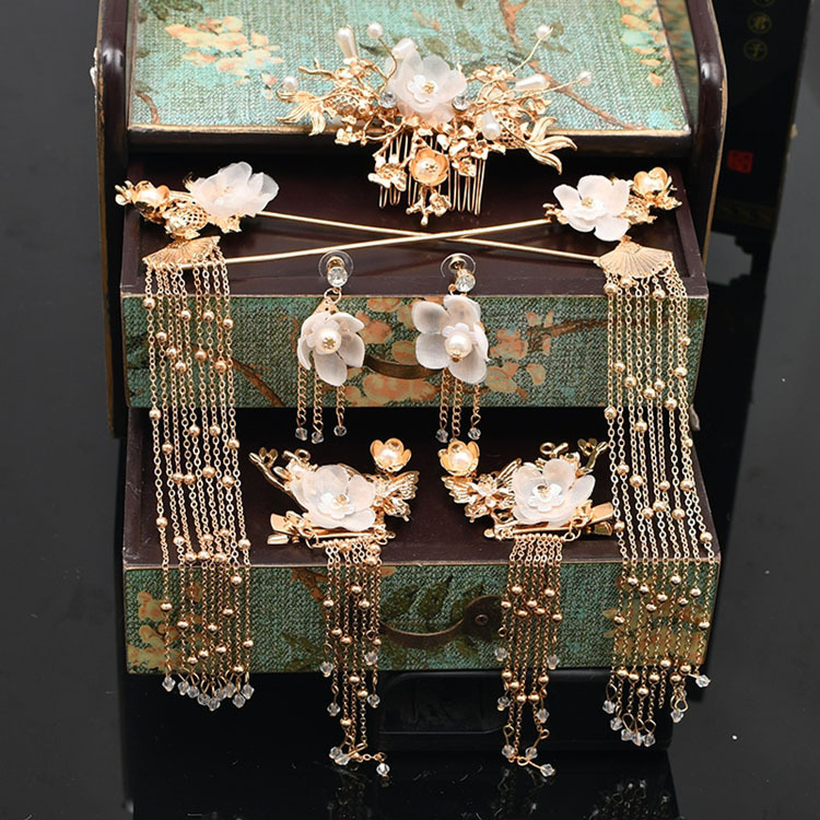 Aksesoris pakaian Han baru 2021 pakaian rakun pengantin Xiuhe hiasan kepala rumbai langkah goyang setelan kostum kuno jepit rambut aksesoris rambut untuk wanita