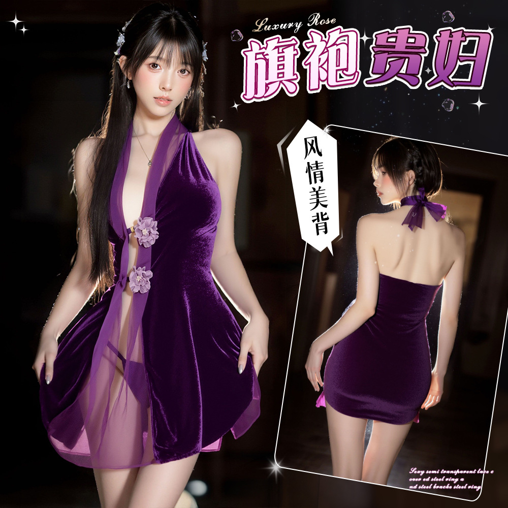 Setelan Baju Tidur Tanpa Lepaskan Dada Kecil Seragam Seragam Pure Godaan Cheongsam Ungu Seksi