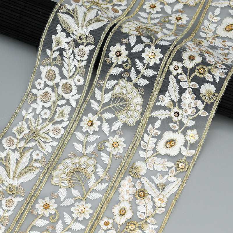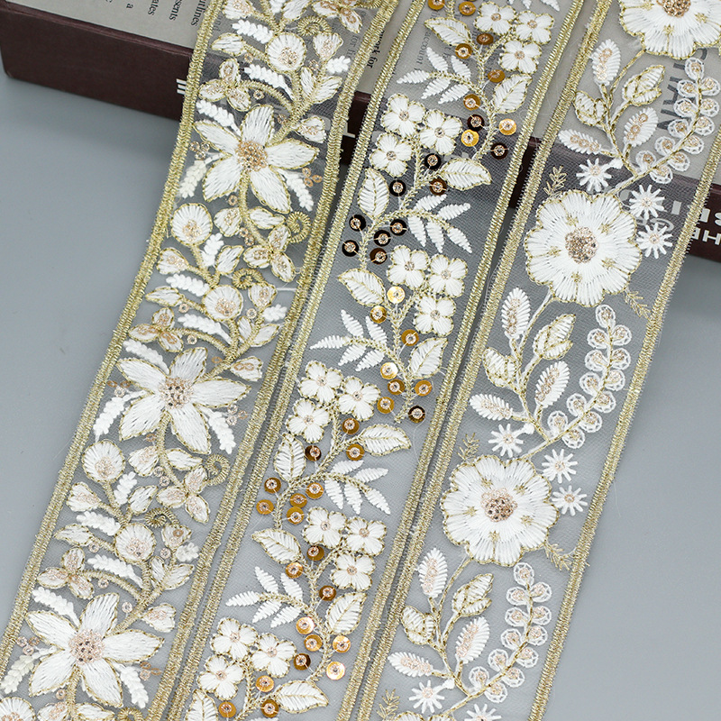 民族风刺绣花边条金线亮片diy服装袖口裙边头纱配饰辅料现货批发