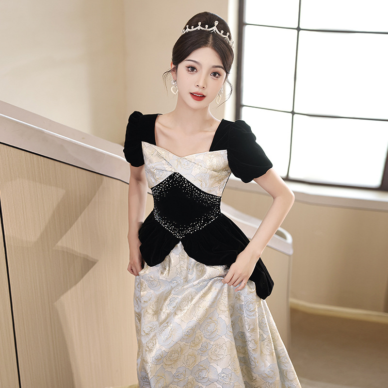 Gaun malam Perancis wanita perjamuan elegan kelas atas cahaya mewah niche host tahunan rapat seni rasa tinggi ujian Hadiah dewasa