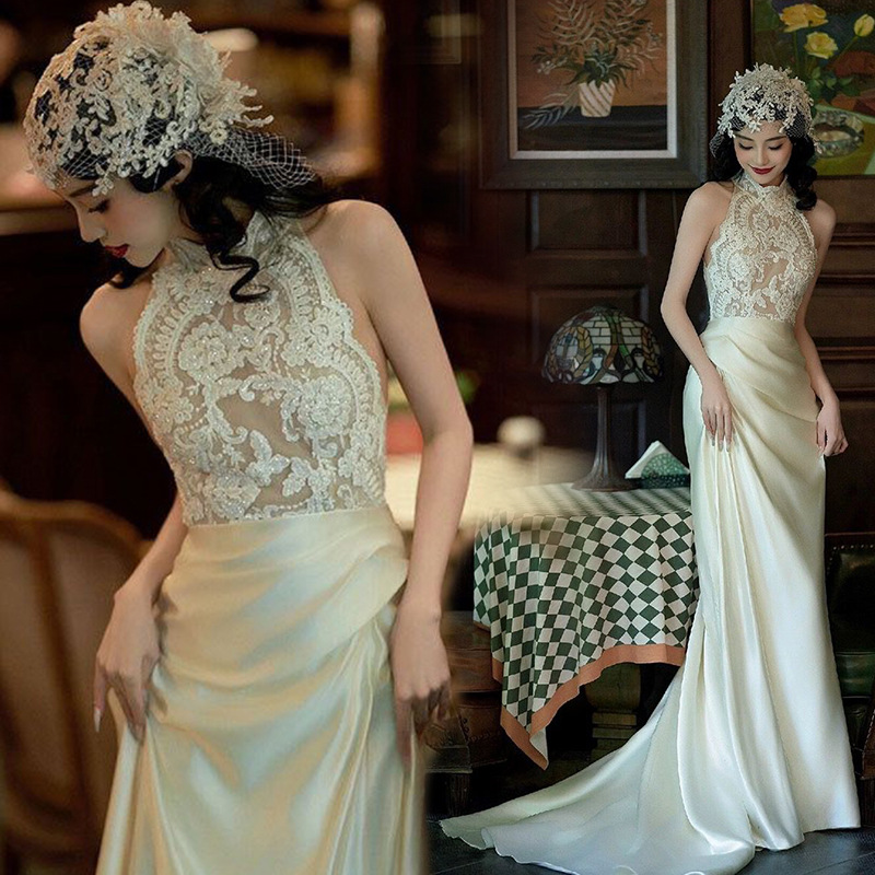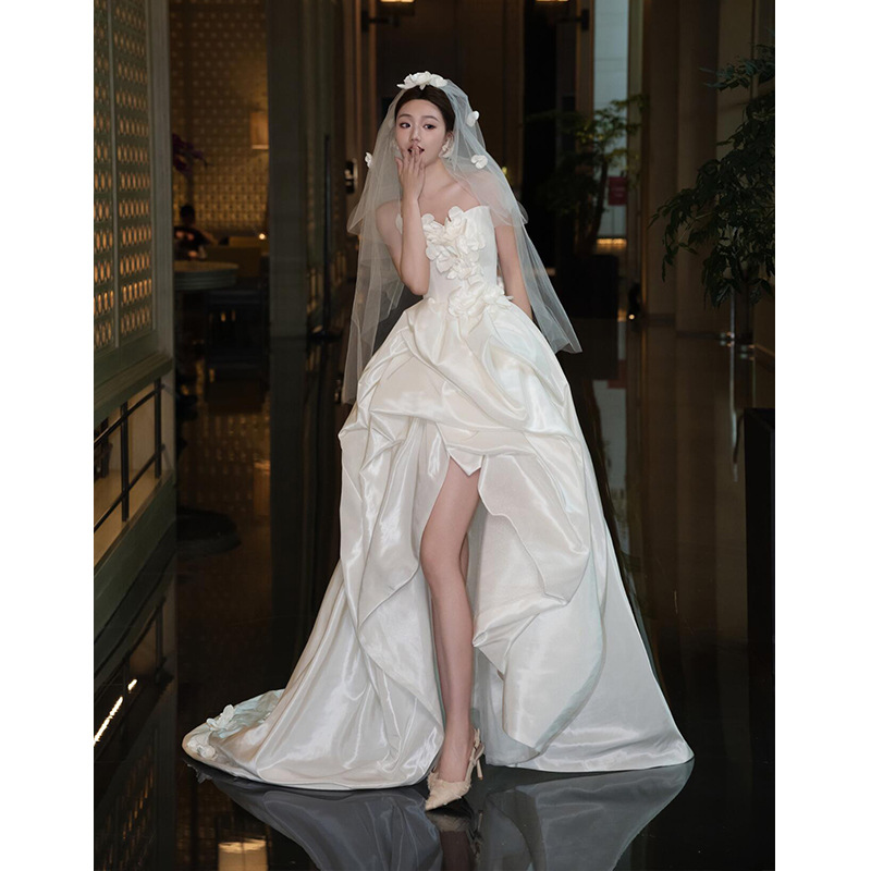 Gaun Pengantin Ringan Model Perancis Bride Bride 2025 Pernikahan Model Baru Permukaan Satin Pertunangan Pernikahan