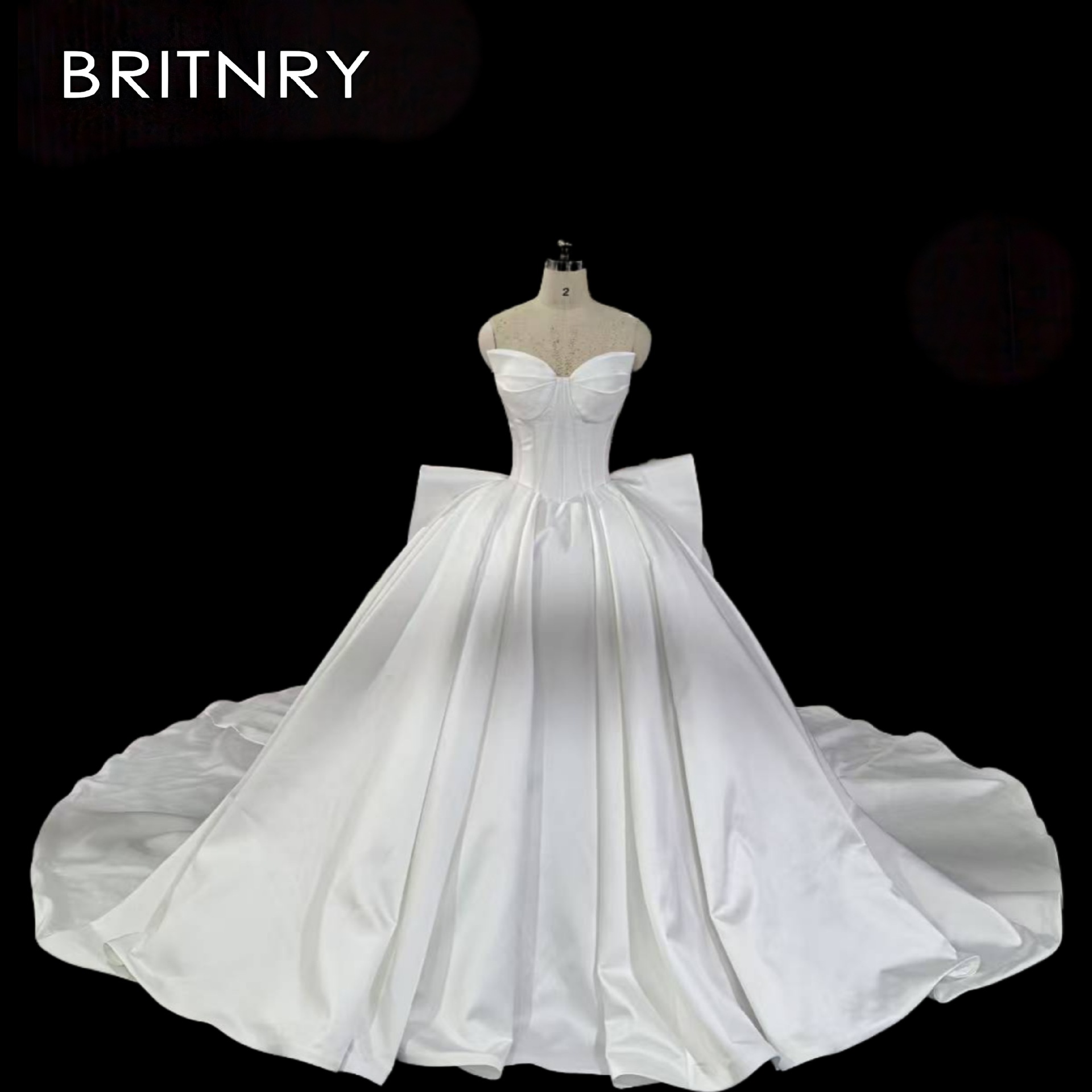 Gaun Pengantin Ringan Model Baru 2025 Gaun Satin Trailing untuk Pengantin Wanita Gaya Perancis Romantis Retro Elegan Gaun Pagi Pakaian Pesta Pernikahan