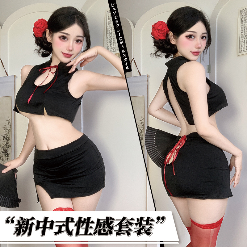 性感情趣内衣火辣开叉镂空绑带旗袍纯欲诱惑制服免脱套装女2740