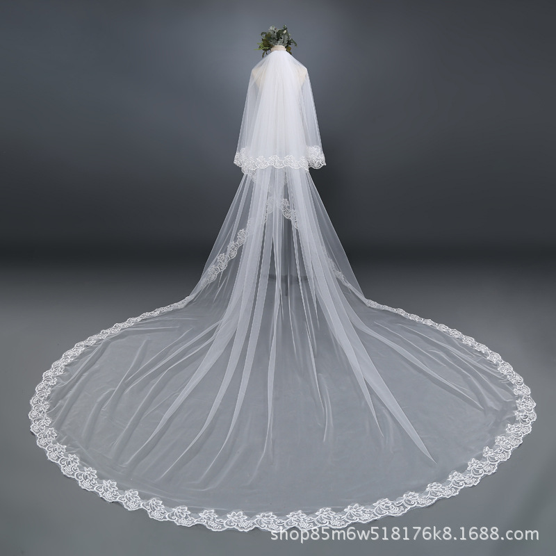 Grosir Baru renda super panjang 3 m plus lebar trailing sisir dua lapisan kerudung pengantin kerudung pernikahan putih