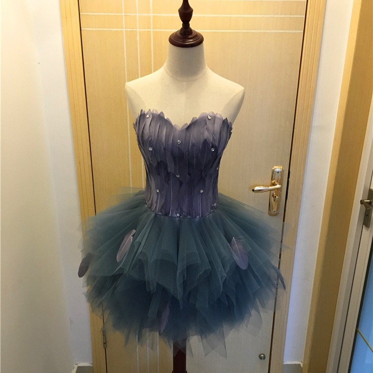 Gaun malam bulu pengiring pengantin wanita, gaun pendek pesta ulang tahun pertunjukan pesta makan malam prom, Gaun Malam bulu pengiring pengantin ramping abu-abu