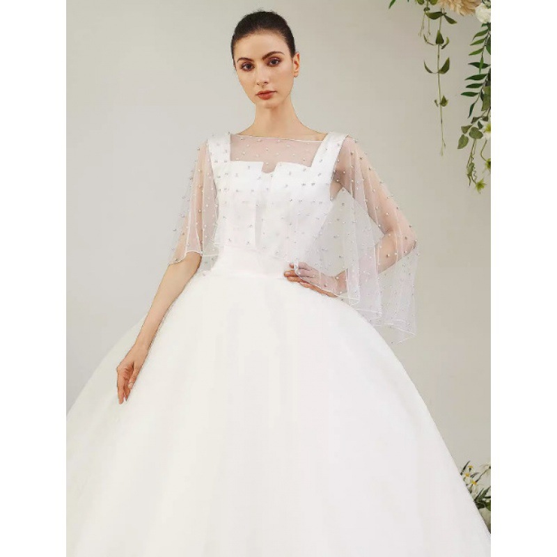 Jubah pernikahan wanita, selendang jala pengantin Retro tipis dengan manik-manik untuk fotografi berpergian