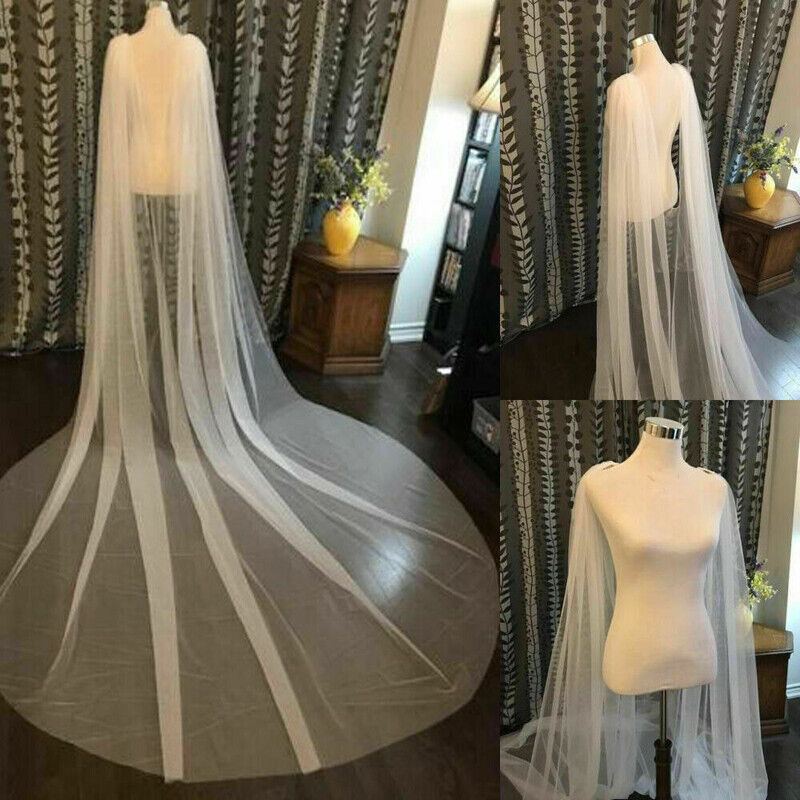 Gaun pengantin syal panjang gading, kostum panggung jubah trailing jala lapisan tunggal