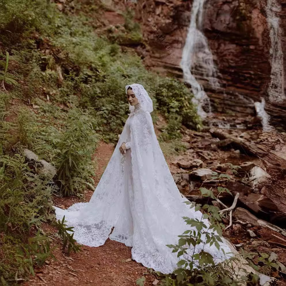 Diskon besar Amazon rok besar renda panjang topi besar selendang gaun pengantin pakaian pernikahan grosir