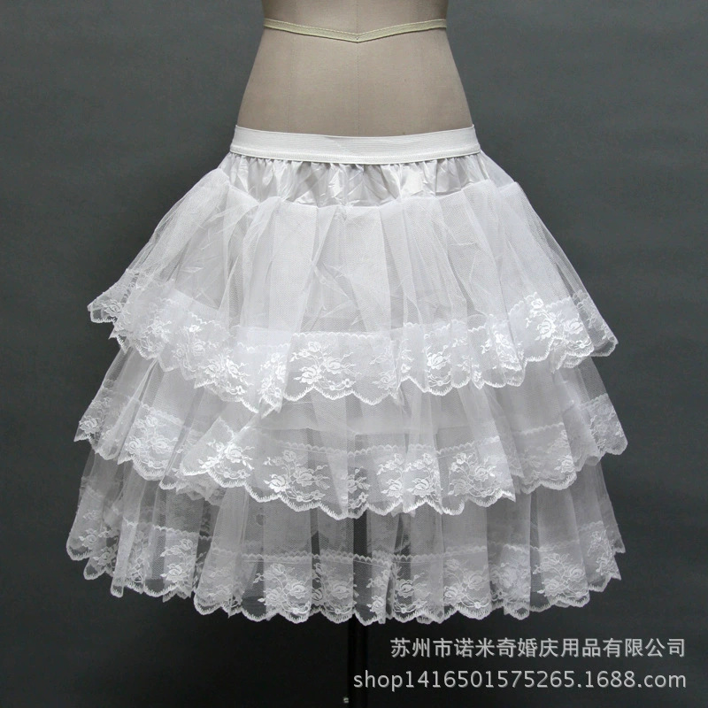 Pabrik grosir anak-anak gaun pernikahan rok dukungan tiga lapis jala keras tanpa tulang renda harian lolita rok bawah