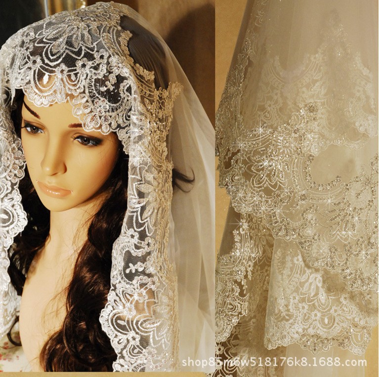 3 M 2-lapisan kerudung renda berpayet di dalam perdagangan luar negeri gaun pernikahan aksesoris Eropa dan Amerika kerudung pengantin