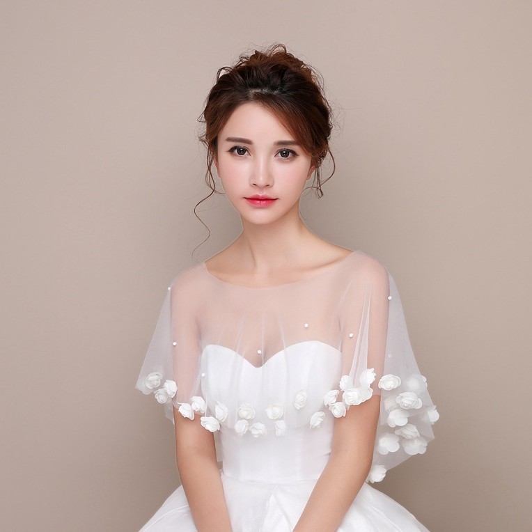 Syal pernikahan, selendang jala berpayet gaya Korea lengan pendek bahu terbuka musim panas dan musim gugur