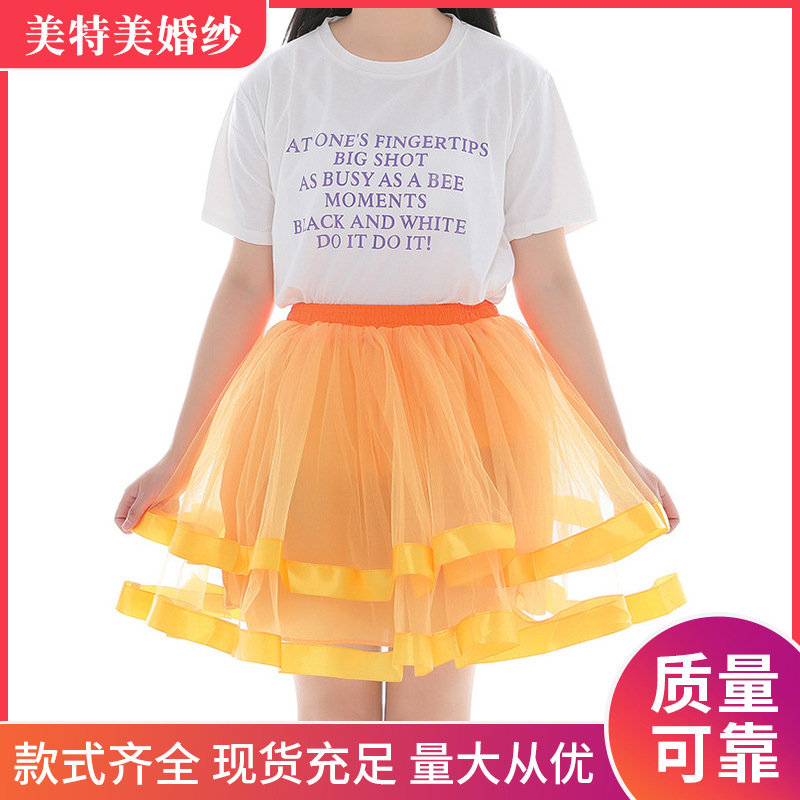 Pabrik grosir satu cincin baja dua lapisan benang gaun pernikahan rok mendukung anak-anak kinerja pendek rok pelayan cos rok
