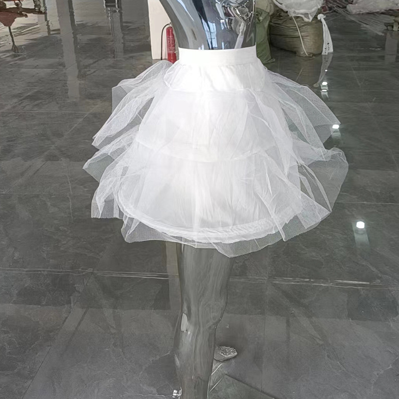 Grosir gaun pengantin rok pendek penopang, rok pendek kain tiga baja penyangga untuk gaun pernikahan pendek