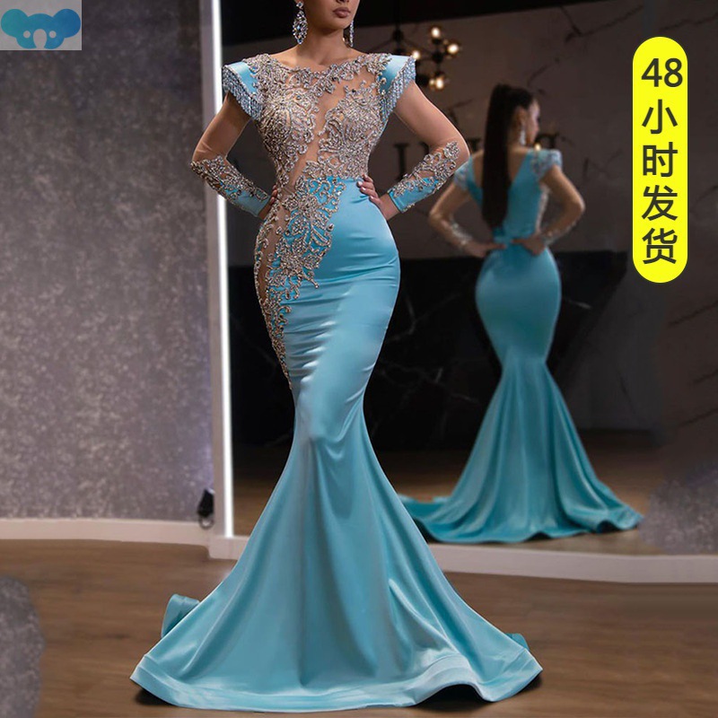 Dress party slimming temperament maxi evening gown gaun rok ikan
