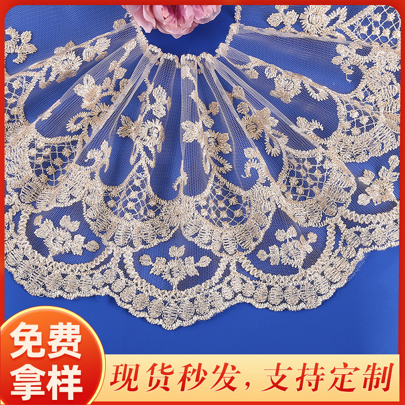 16. Aksesoris dekorasi pernikahan, aksesoris seprai renda bordir benang emas dan perak jala 5cm, dekorasi rumah lembut