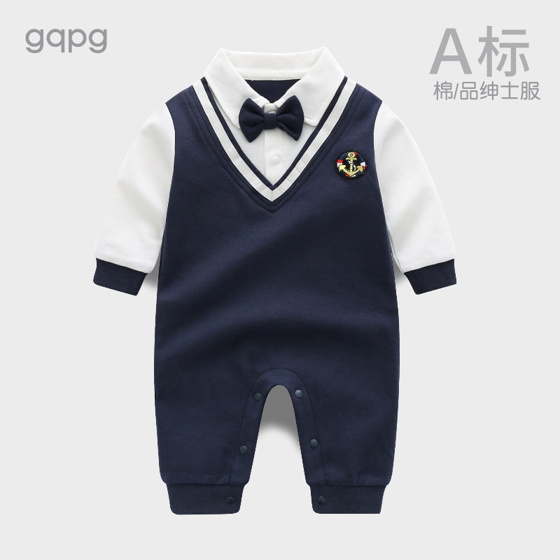 Gaun bayi satu tahun pria gaya preppy pria katun lengan panjang palsu dua potong 100 hari jumpsuit bayi pakaian musim semi dan musim gugur