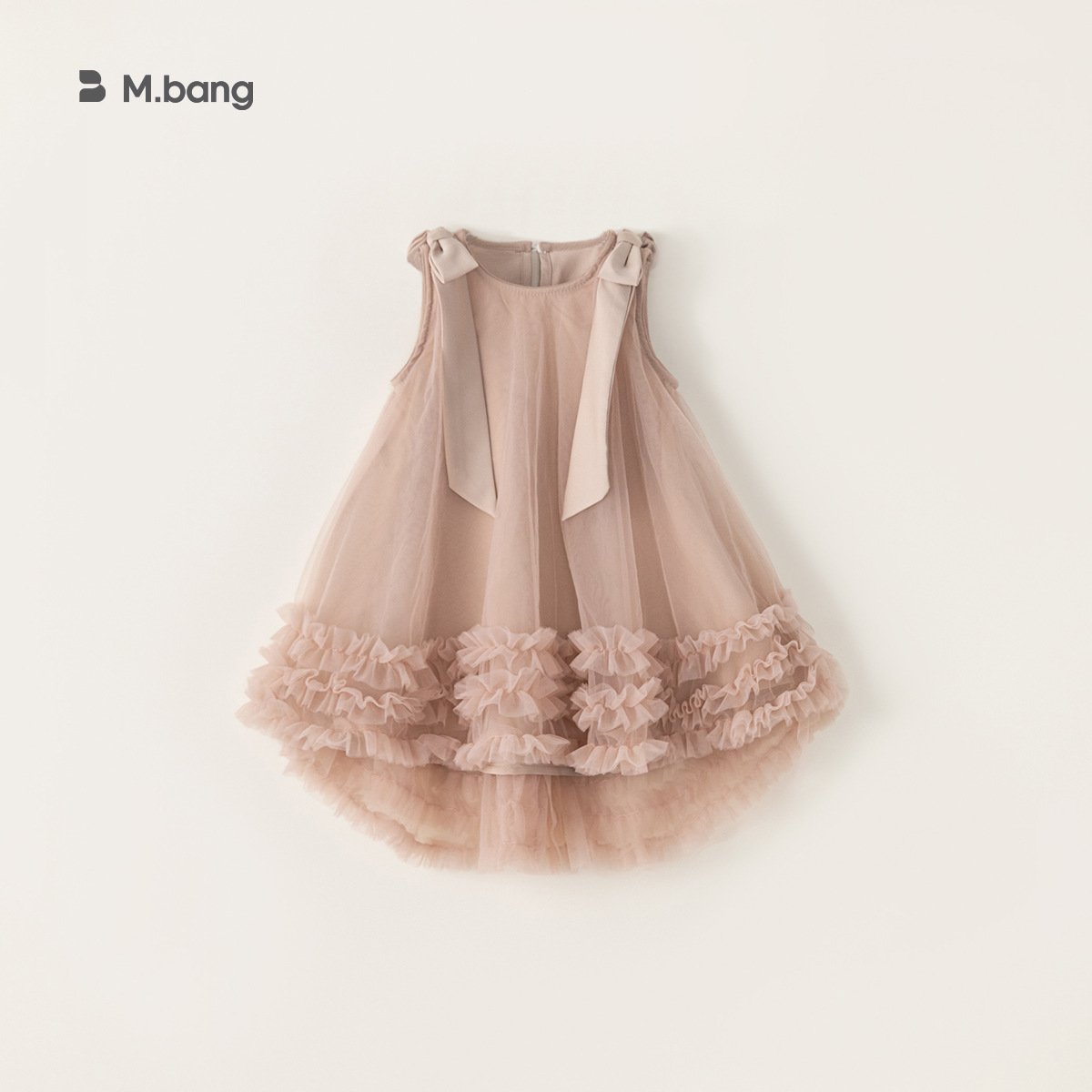 Yibao Pakaian Anak Perempuan Busur Tali Ikat Jaring Rok Putri Gaun Anak Perempuan Gaun Musim Panas XQ41471