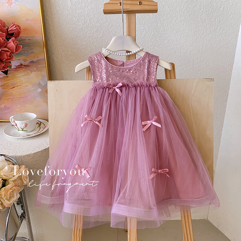 Gaun putri musim panas anak perempuan gaun tanpa lengan gaya Barat baru gaun renda anak-anak gaun kasa anak perempuan