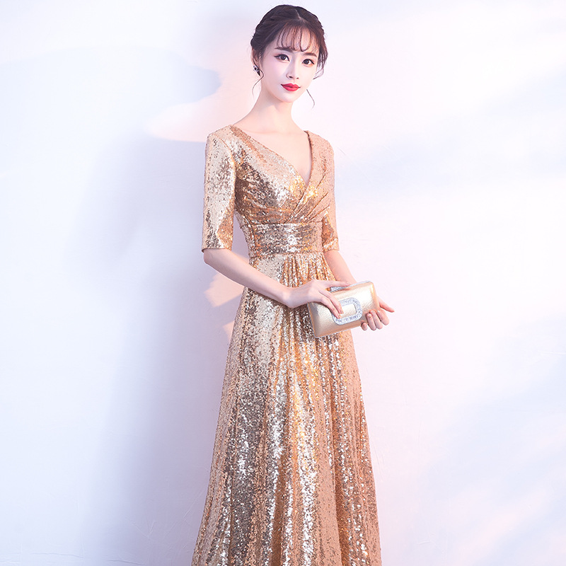Gaun Malam Emas 2025 Gaun Pesta Tahunan Perjamuan Selebriti Industri Berat Ekor Ikan Payet Tuan Rumah Temperamen Musim Dingin Baru