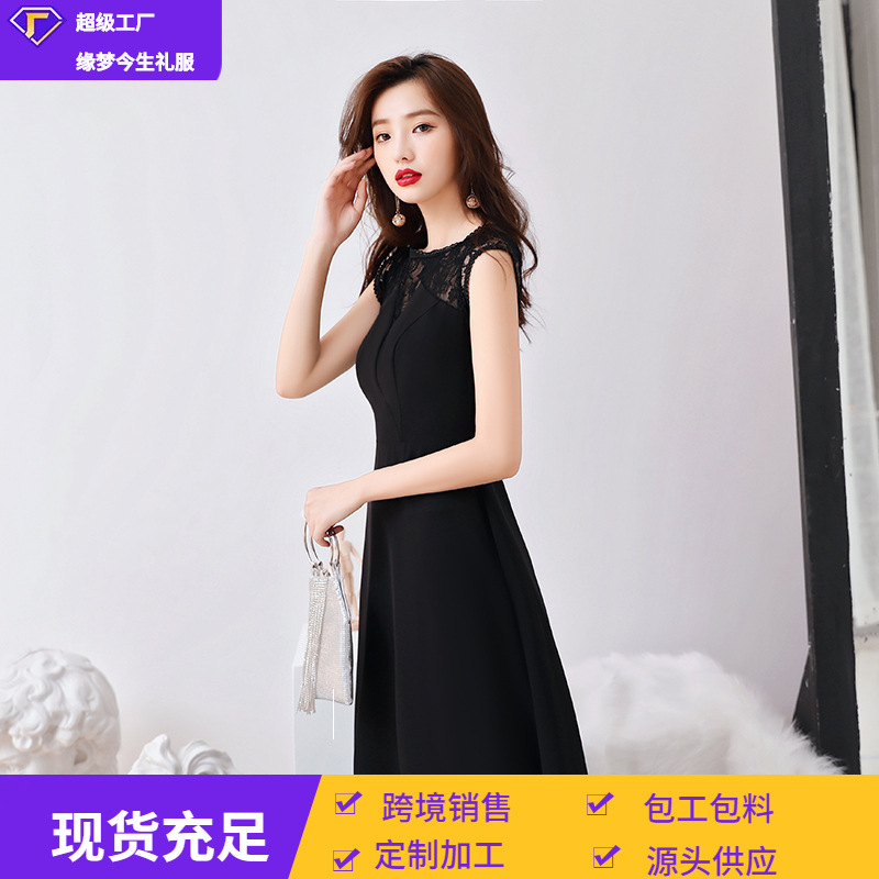 Gaun malam elegan untuk wanita gaya baru 2026, cocok untuk pesta dan pemakaian sehari-hari, ramping dan bergaya, gaun panjang hitam untuk pembawa acara.