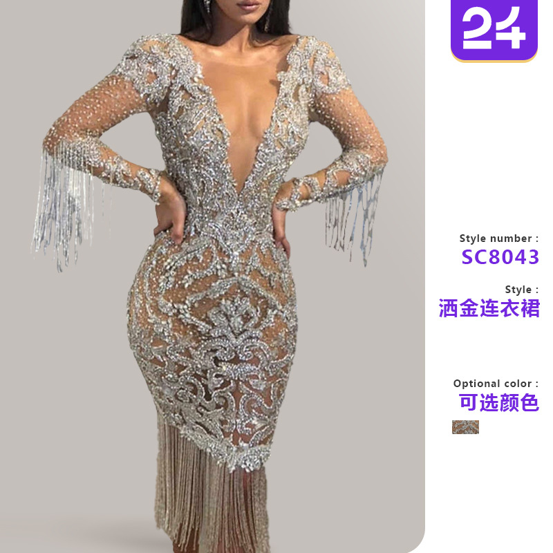 Gaun wanita lintas batas Eropa dan Amerika baru pakaian wanita perjamuan wanita seksi gaun malam jala panjang elegan untuk wanita 2024