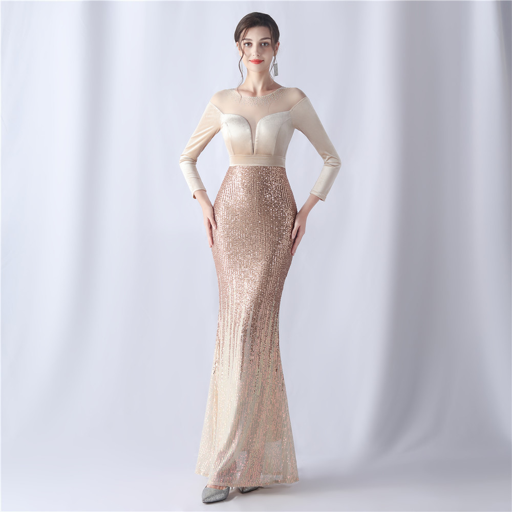 Gaun malam fishtail lengan panjang wanita, gaun malam fishtail lengan panjang, elegan jamuan makan, pertemuan tahunan, elegan, Beludru, temperamen Queen 18291