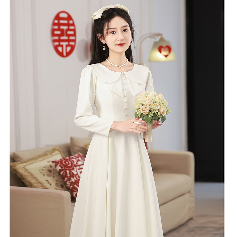 Gaun pengiring pengantin wanita, Asia Tenggara shopee2024 baru panjang elegan lengan panjang pelangsing biasanya dapat dipakai