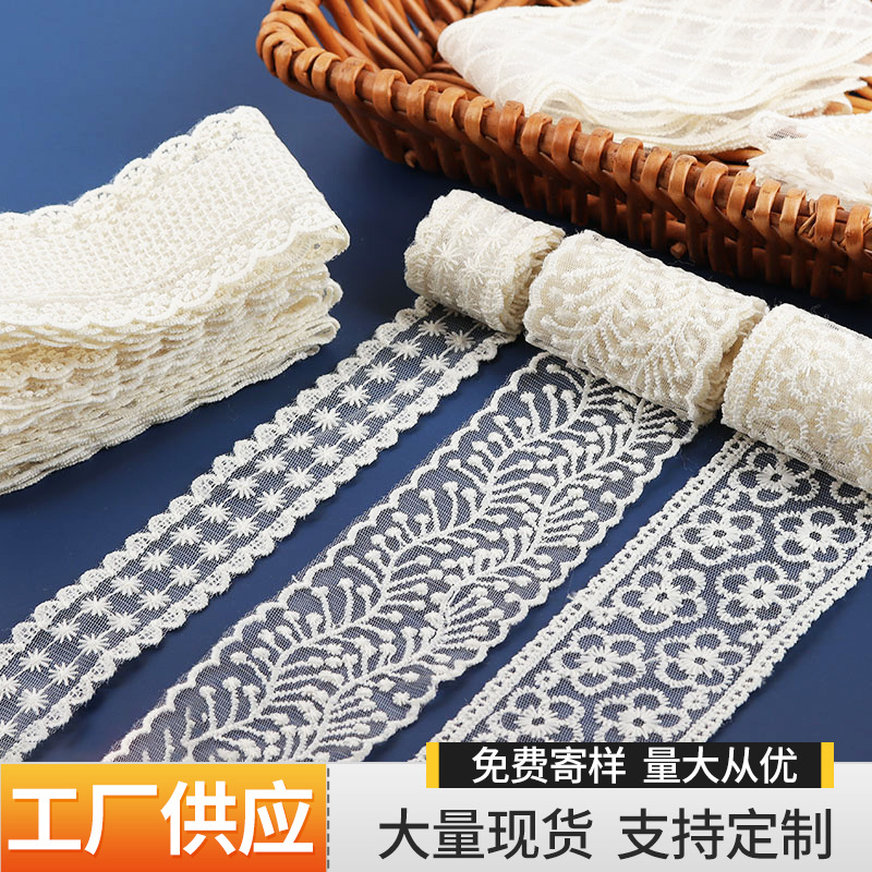 Aksesori jepit rambut pita aksesori pakaian bahan pita dasi diy renda bordir jaring krem gaya Korea