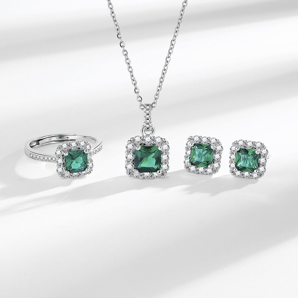 TK streaming langsung diskon besar simulasi zamrud persegi kecil gula zirkon kalung anting cincin wanita pengantin setelan perhiasan pernikahan