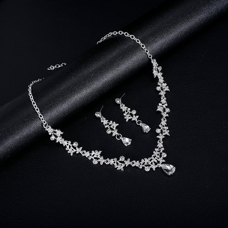 Kalung Gaun Pengantin Wanita Gaya Korea Set Dua Potong Anting Liontin Bentuk Tetesan Air Model Pendek Wanita Kalung Tulang Selangka Mudah Dipadu Padan Elegan