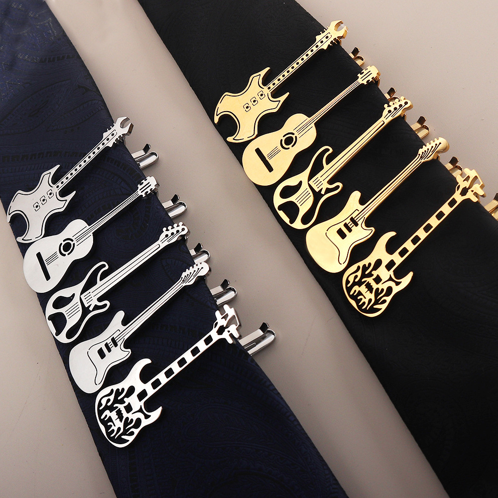 新款不锈钢造型领带夹吉他造型男士婚礼西装领夹金属时尚优雅配饰
