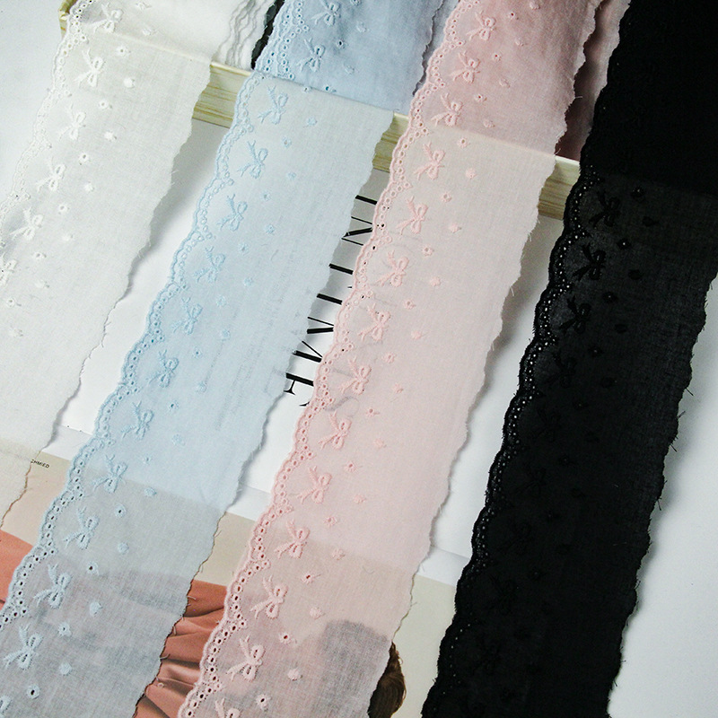 厂家直供现货蝴蝶结棉布花边 宽7cm DIY头饰全棉环保服装辅料批发