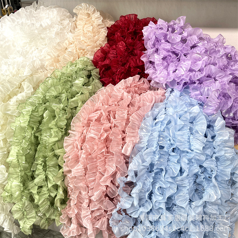 3.8 cm lebar mutiara satin lipit Lolita lengan daun teratai rok dekorasi kue tepi bunga desainer