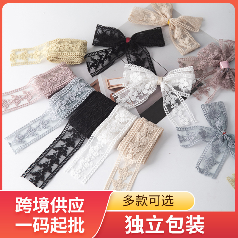 Cross-border untuk 4cm enam-warna mesh kode batang busur hiasan kepala pakaian Aksesori diy dekoratif renda renda