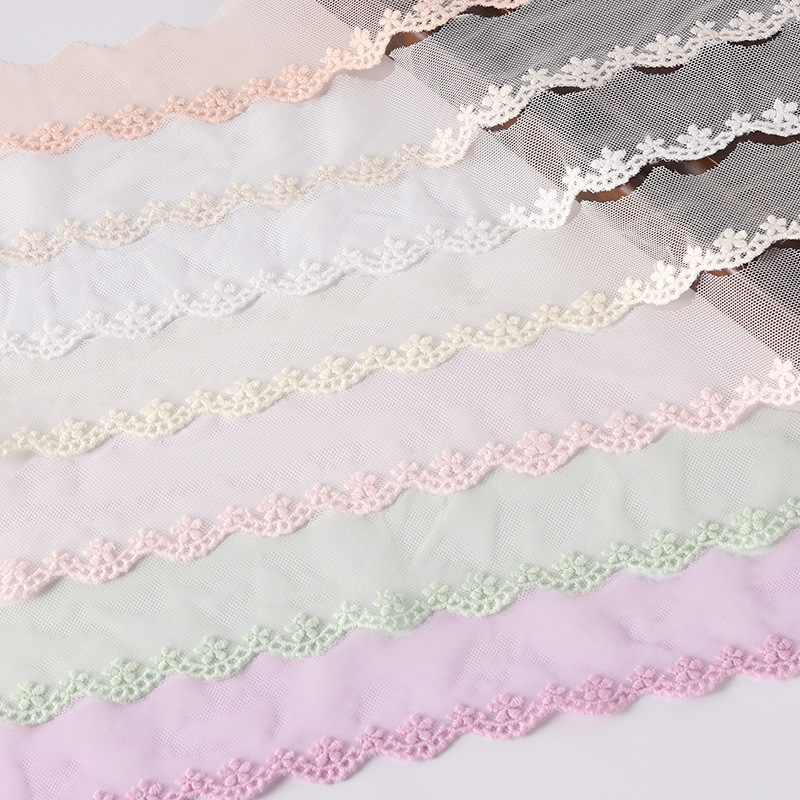 现货棉线网纱刺绣花边 纯棉袖口下摆软网布蕾丝花边辅料宽4cm