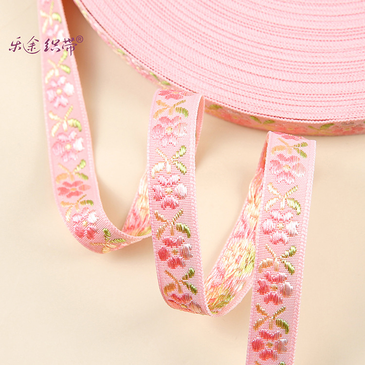 Pita bordir jacquard renda 1.2cm, pita dekorasi Hanfu etnik, pita bordir merah Cina 12mm