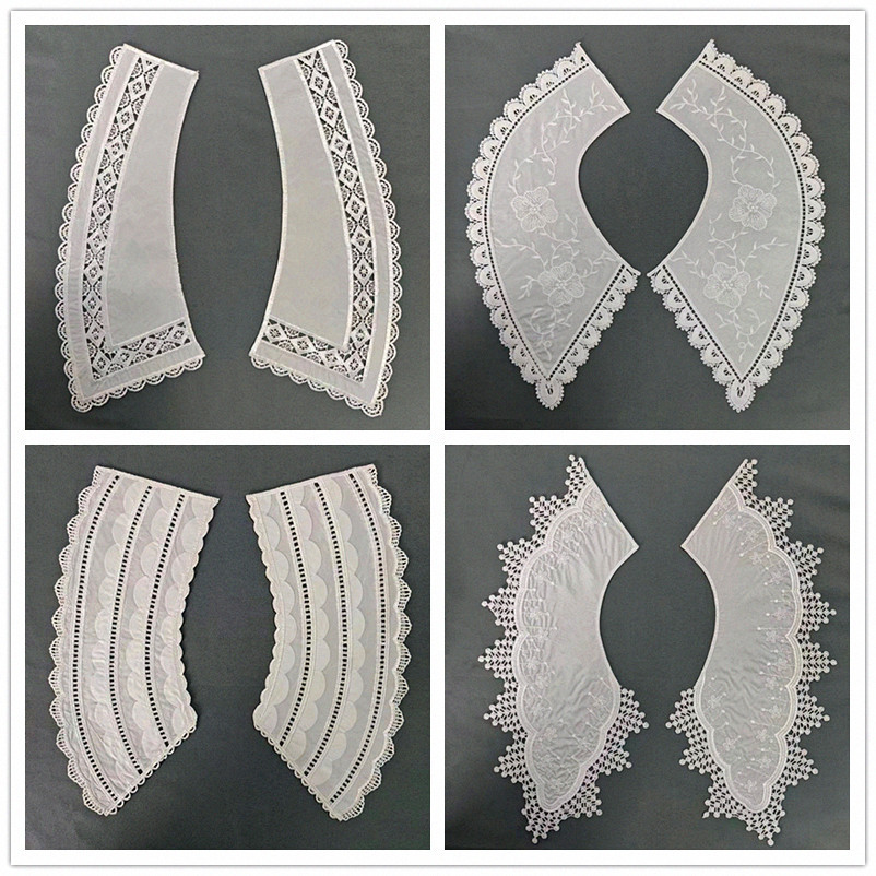 Kerah bordir katun, aksesoris renda kerah palsu katun bunga, tambalan bunga berongga