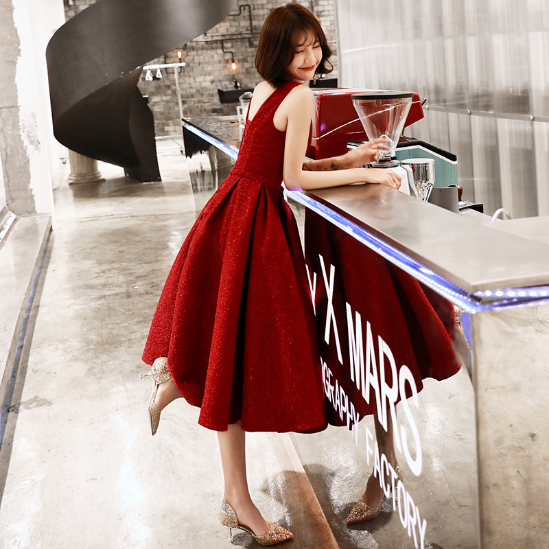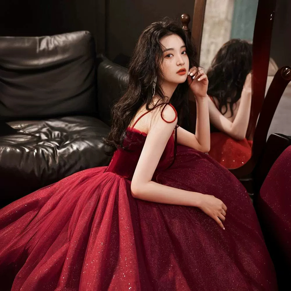 Gaun pengantin bersulang, gaun malam tali pertunangan merah anggur, terima kasih, kecil 2024