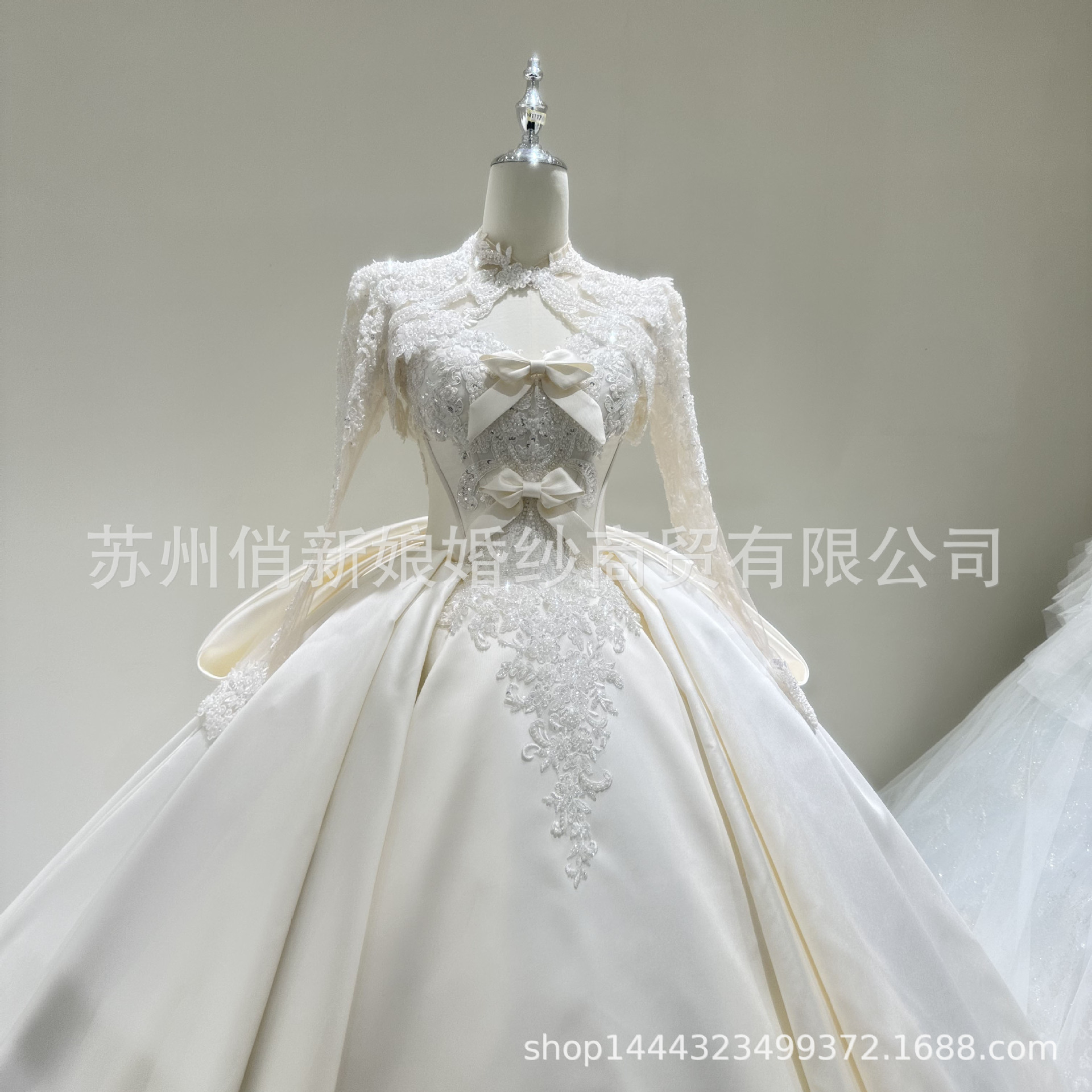 Gaun pengantin utama, gaun pengantin Satin lengan panjang kecil ukuran retro Musim Panas 2024