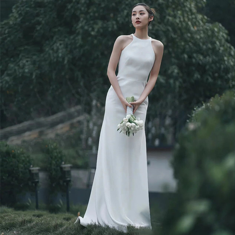 Gaun Malam Pertunangan Gaun Pengantin Wanita Gaun Pagi Warna Putih Minimalis High-end Register Sertifikat Sertifikat Gaun Pengantin Ringan Permukaan Satin