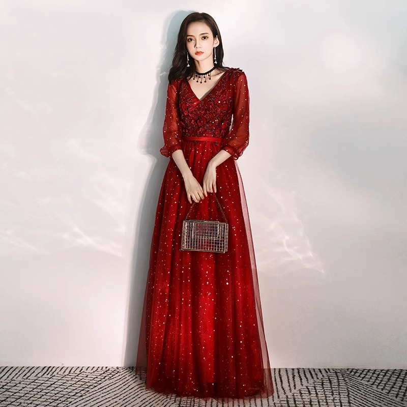 Gaun pernikahan wanita, gaun malam untuk pengantin modis musim semi dan merah