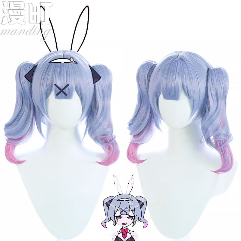 Manding Hatsune wig cosplay lubang kelinci, aksesori ikat kepala telinga kelinci lapis biru gradien pink