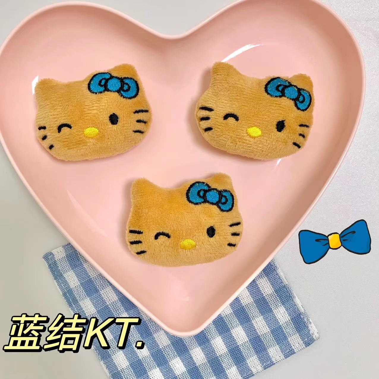 Aksesori perhiasan buatan tangan kepala boneka kartun boneka kucing lucu simpul biru KT sepatu kaus kaki anak-anak dan topi aksesori pakaian