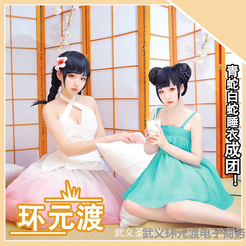 Honor cos pakaian Daqiao Xiaoqiao pakaian cosplay Ular Putih Hijau ular pakaian wig pakaian sehari-hari piyama Gaun wanita